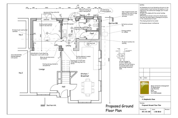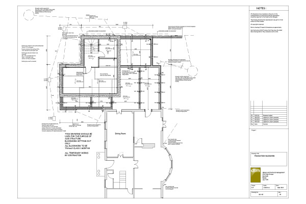 Building regulation design drawings are advised (but not legally required) before construction works commencing on site. The drawings deal with the technical details of the construction such as foundations, insulation, floor construction, means of escape, structural support etc and are often produced with the input of a structural engineer. They also enable the construction work to be tendered in greater detail which is likely to produce cost savings on the overall building cost.